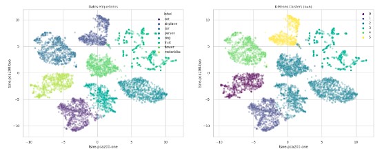 In this project we processed images with a Convolutional Neural Network called VGG16, keeping the features obtained from the layer before the last one. Then we used different clustering algorithms (K-means, K-medoids, DBSCAN) to cluster the images based on the features obtained and compared the results with Van-Dongen and Rand Index. In order to visualize the results, we used algorithms for dimensional reduction (PCA and T-SNE). Finally we applied some algorithms used for object detection in images.
